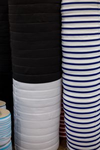 Our garters are widely used in garments (underwear or shorts) and personal protective equipment (PPE) like face masks or face shields. The production involves a process of creating narrow fabric by interlocking loops of yarn, thread and rubber using a hook. The garters have a stretch of 2.8cm at most, guaranteed to be durable even after multiple uses.